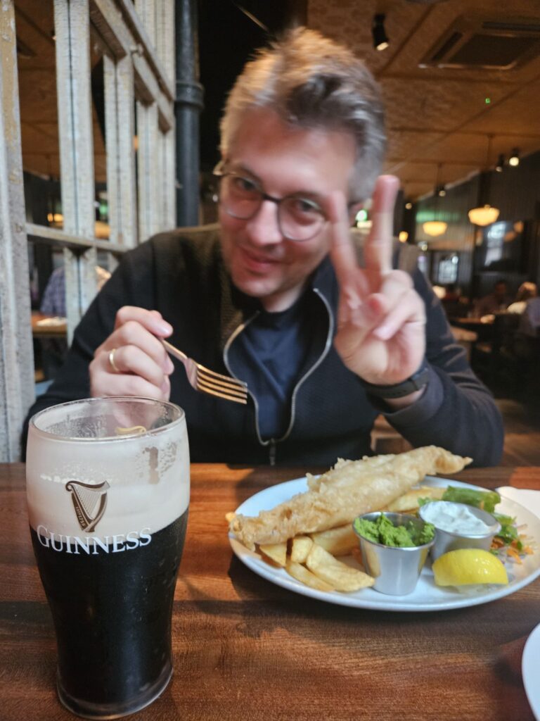 Diesen wunderbaren Tag schließen wir mit einem klassischen Irish stew, Fish & Chips und einem Pint of Guinness!