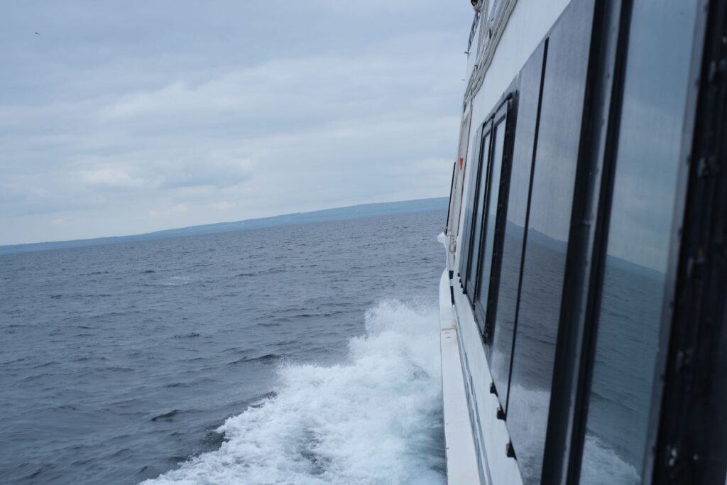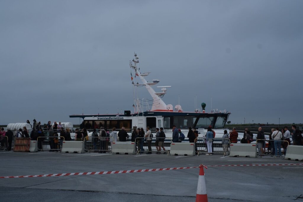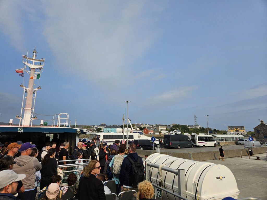 Wir buchen die Tagestour, quasi wie ein Kreuzfahrsschiff Tagesausflug, man hat Zeiten wo man wo auftauchen muss und Zeiten, die man frei zur Verfügung hat. Los geht’s um 9.30 Uhr im Hafen vom Galway, die Profis stehen schon seit einer Stunde da um die besten Plätze an Deck zu ergattern.