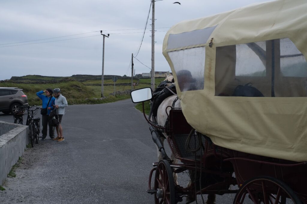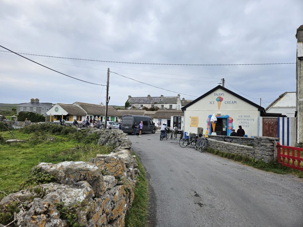 Die Inselgruppe gilt als Refugium der Vergangenheit, wo noch mehrheitlich Irisch gesprochen wird und das einfache Leben praktiziert wird. Auch wenn erst in den 1970ern der Strom auf die Insel kam, ist der Verkauf von viel Wolltextilien und Handwerk mehr ein touristisches Überbleibsel des alten Irlands als Gegewart, wo sich die Leute mit mehr Kleingeld einen Rückzugsort schaffen.