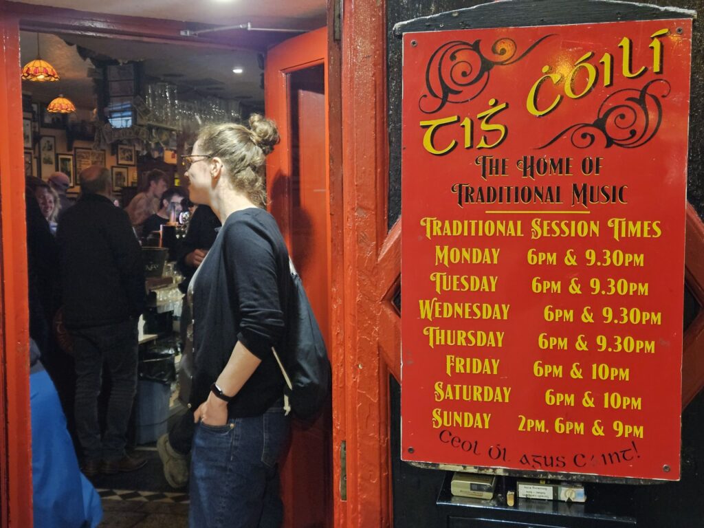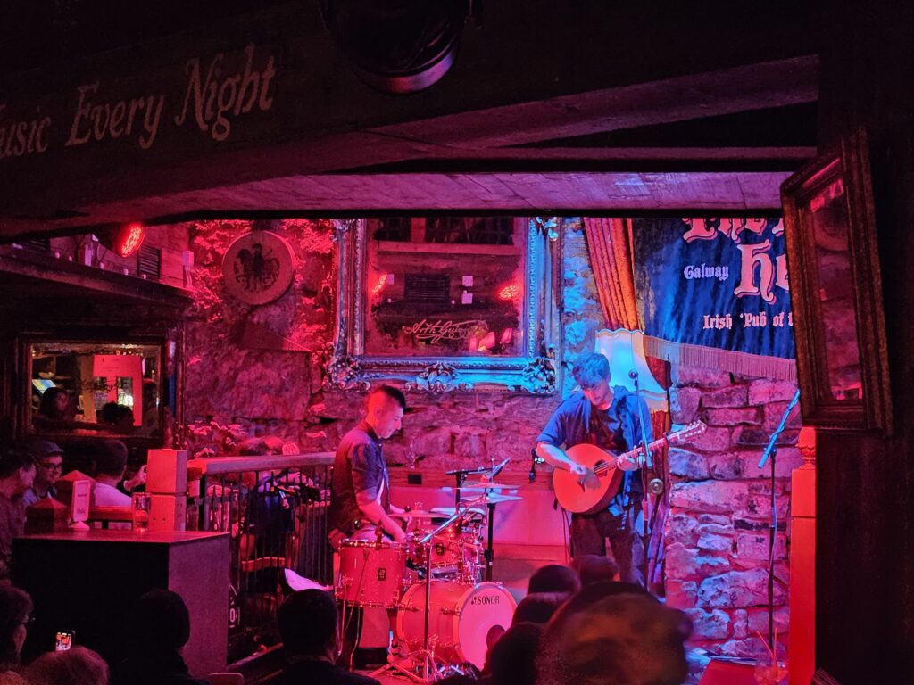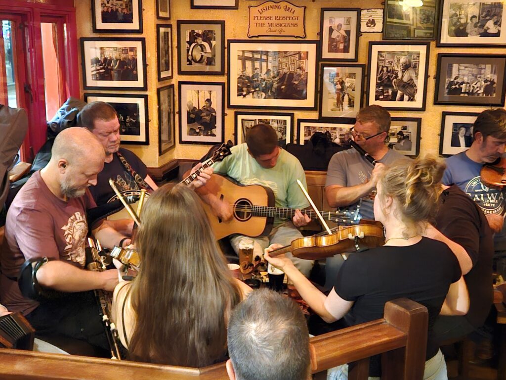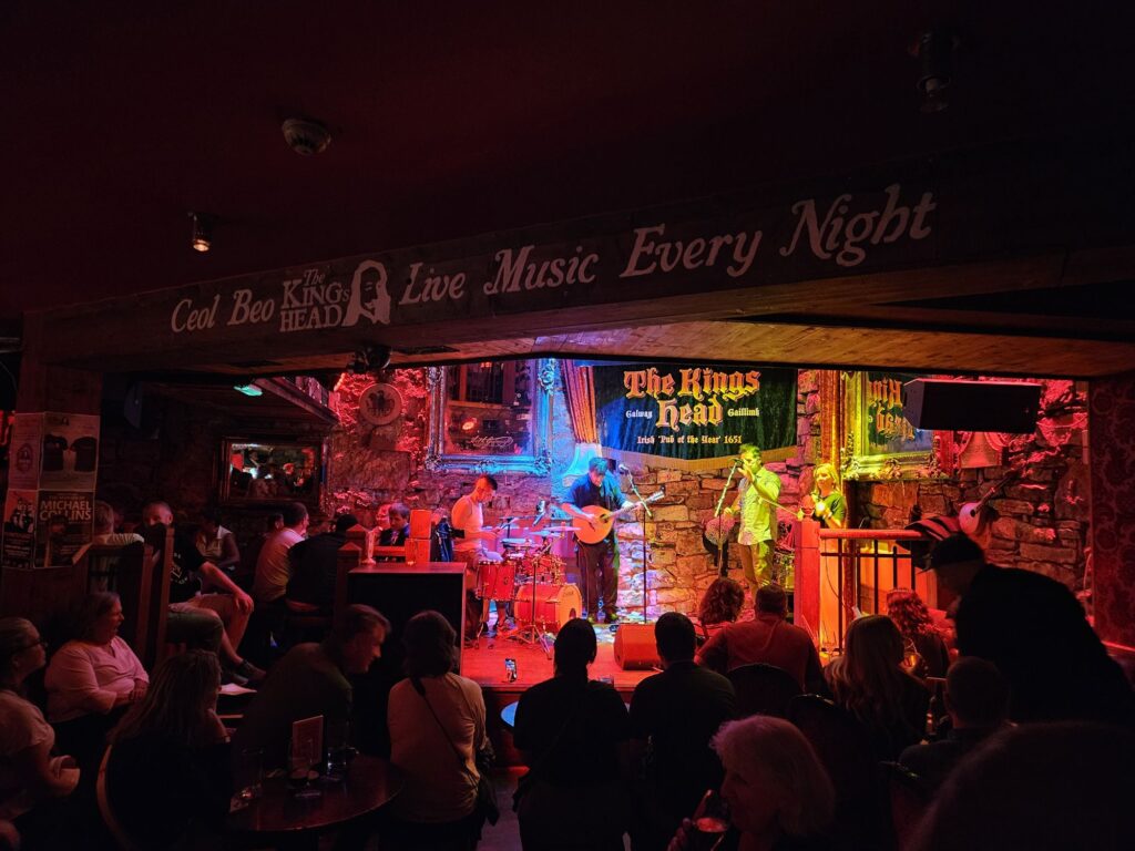 Die Eindrücke müssen wir danach noch verarbeiten und rasten uns im Hotelzimmer aus, denn um 21.00 Ihr geht es nochmal raus ins Pub-Leben eintauchen und eine fantastische Live-Band mit traditioneller Irischer Musik mit Pop/Rock-Einflüssen hören… im Pub „The Kings Head“. Sehr touristisch, aber leiwand! Im Nachbarpub, wo wir beim Nachhause gehen noch reinschauen, wurde fleißig gejammed 🎸🎻!