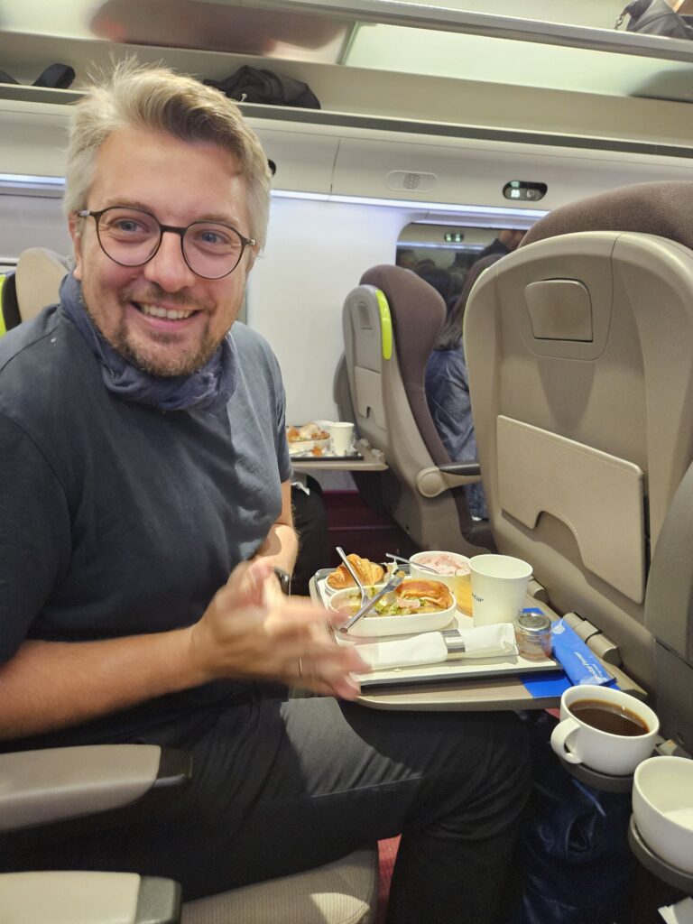Zuerst geht es von Liz früh los, damit wir den ersten Eurostar von London nach Paris um 8.00 Uhr erwischen. Danach geht es Rux-Flux durch den Tunnel in die Französische Hauptstadt. Mit Standard Premier ist such ein Lounge-Besuch und ein Frühstück an Board inkludiert. Wow 🤩!
